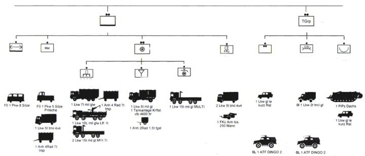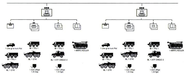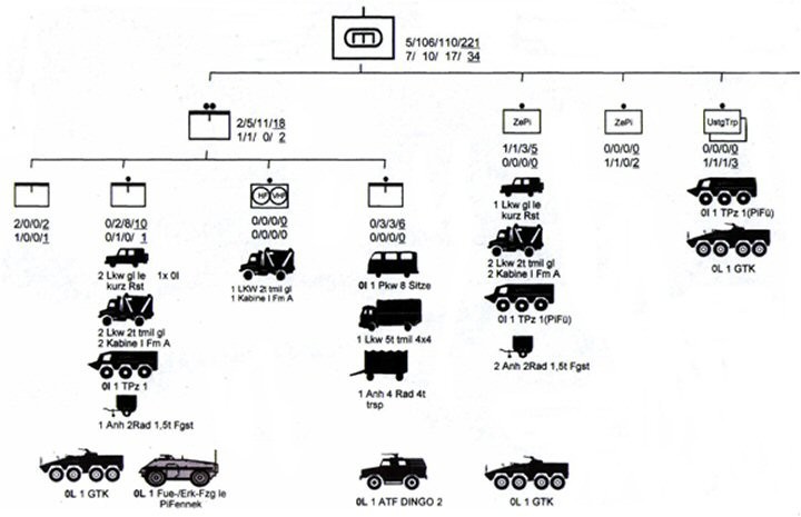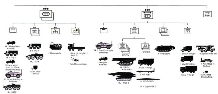Im Unterstellungsverhältnis der Panzerbrigade 20 sollte die Panzerpionierkompanie nachstehende Gliederung erreichen.