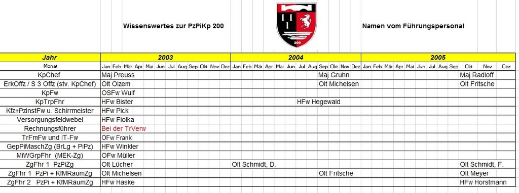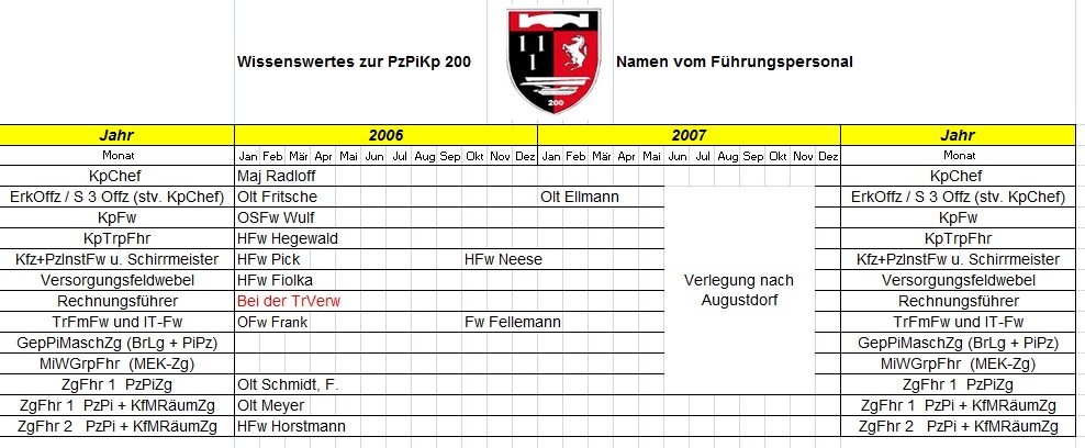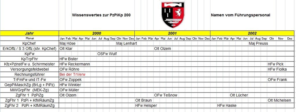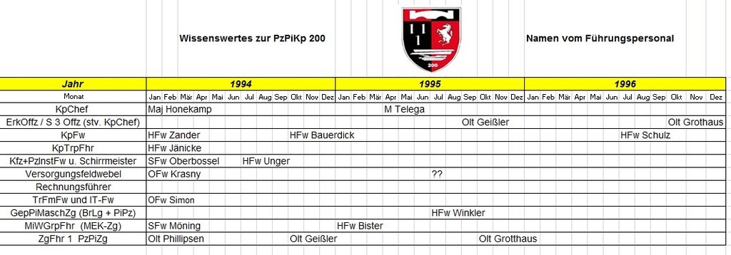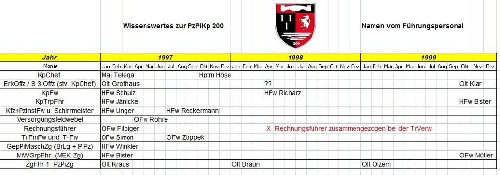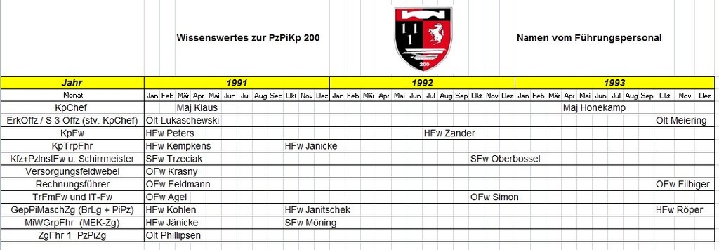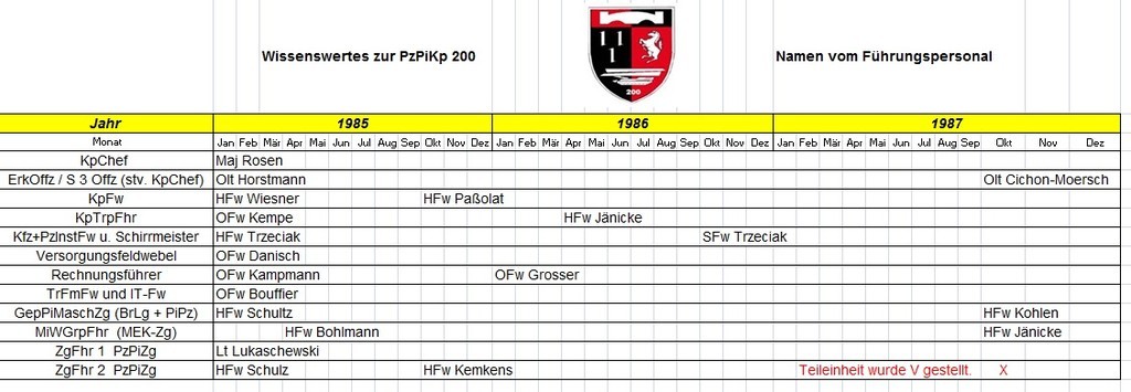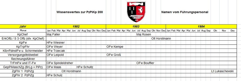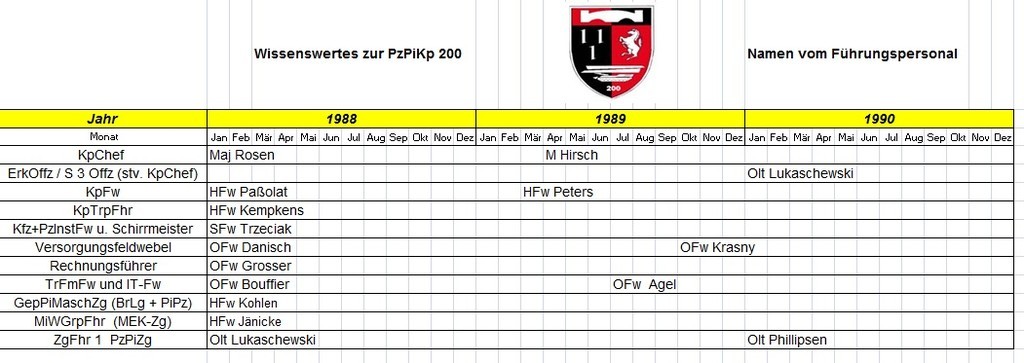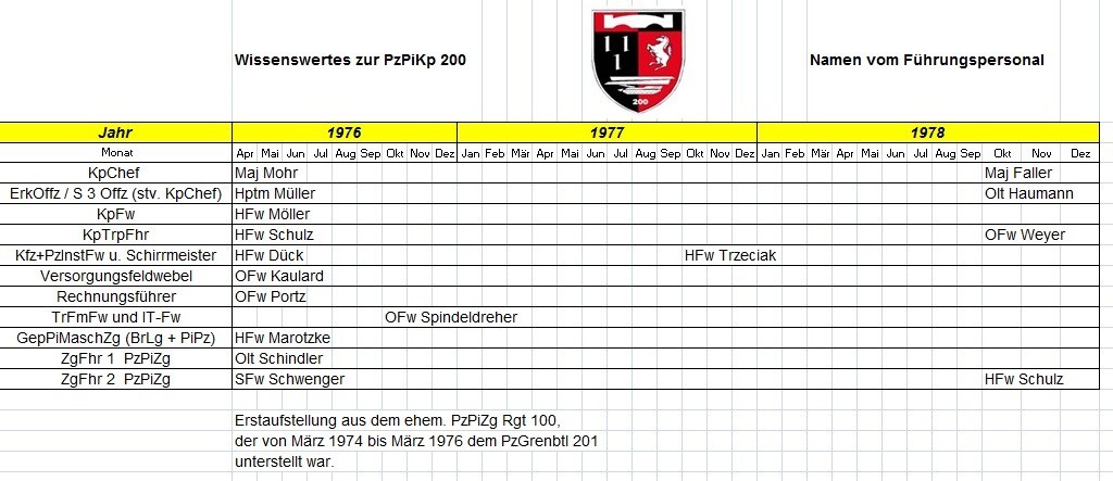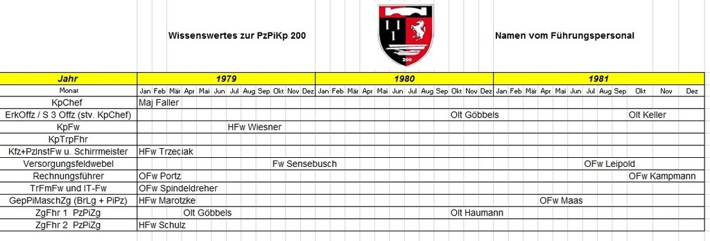 In den Jahren von 1976 bis 2007 haben die in den Tabellen aufgeführten Führungskräfte gedient.